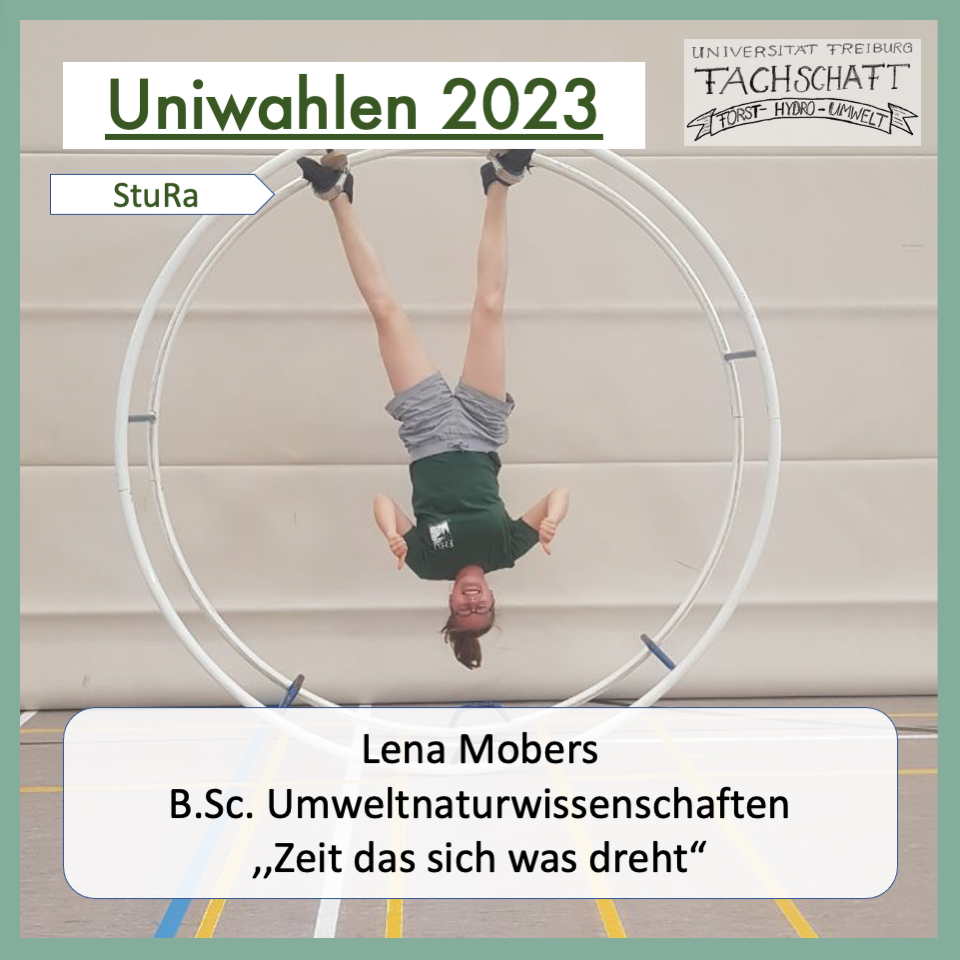 In den StuRa wählt unser Fachbereich (Forst-Hydro-Umwelt) eine offiziell gewählte Person und ihre Vertreter*innen. Ihr habt nur eine Stimme zu vergeben, es werden aber alle ab einer Stimme insgesamt als Vertretung gewählt, wodurch es keine große Konkurrenz bei der Wahl geben sollte.